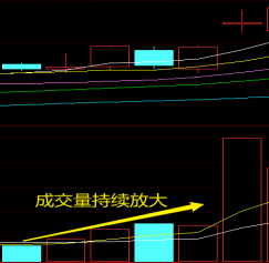 ★步骤四:通过3轮指标粗略筛选之后,留下都是当天相对优质个股了,最后通过成交量进行最后的指标筛选,依次点击自选股的K线,找到成交量持续放大的个股。